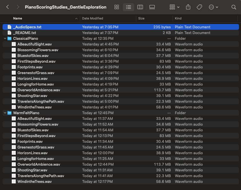 Each piece is written to loop seamlessly and remain comfortable over long play sessions, making it easy to integrate into exploration systems without becoming repetitive or distracting.